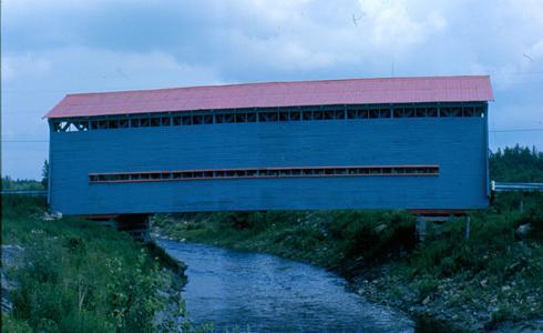 Jusqu’à 7 ponts couverts ont été construits à Val-Alain afin d’assurer les déplacements des premiers habitants. Ils enjambaient le sinueux réseau hydrographique qui serpentait ces nouvelles terres à défricher au début du 20e siècle. Construit vers 1942, le pont Caron demeure le témoin de cette époque et des “triplés”.
